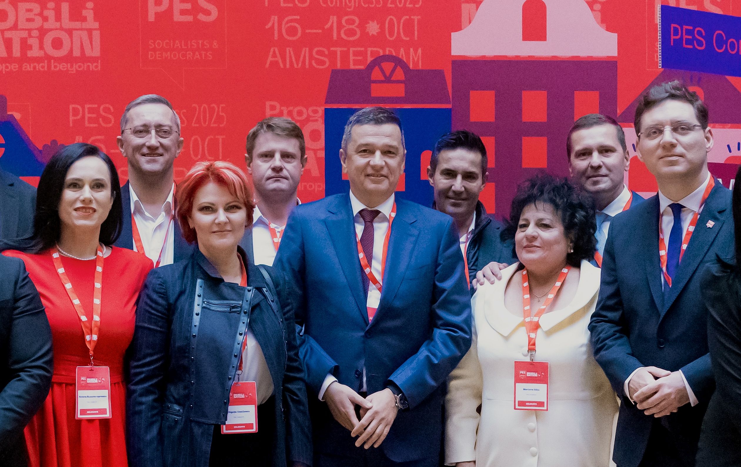 Președintele interimar al PSD Sorin Grindeanu, președintele Camerei Deputaților, vicepreședinții PSD Lia Olguța Vasilescu, Claudiu Manda și Corneliu Ștefan, europarlamentarul PSD Victor Negrescu și deputații PSD Simona Bucura-Oprescu și Florin Manole au participat în perioada 16–18 octombrie 2025 la Congresul Partidului Socialiștilor Europeni (PES), organizat la Amsterdam, alături de liderii de centru-stânga din întreaga Europă.